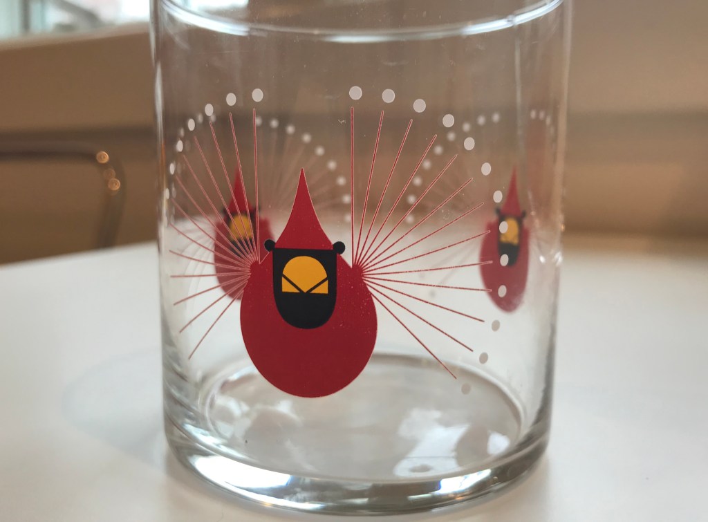My dad is no longer a living human, he now comes and visit us as a cardinal…and therefor I adore all things cardinal. Well that is a lie. I like all things cardinal that are drawn well. Charley Harper (no, not from Two and a Half Men) is one of my favorite artists. Bright colorful animals, fish, birds, he is joyous. Mid-century modern genius, Golden Book goodness, swoon. Fishs Eddy is one of my favorite stores, quirky and eclectic, one can find the best gifts and home goods, that never feel common. My two favorites got together and there is a whole collection of bird, fish, and animal glassware, dishes, towels…perfection. I purchased cardinal tumbler glasses a few years ago, I sit with my dad and sip bourbon, enjoying our together time. Since our family togetherness sentencing we started using the cardinal glasses each night with dinner, so dad could be with us. Cute right? No… stupid. Glass after glass broke. Nobody’s fault. No big deal. But somehow it was a bit heartbreaking. No worries. we can replace them.