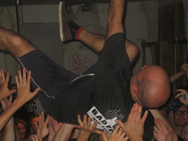 10 years ago today, Bad Trip played their reunion show. No longer kids, they were a clinical psychologist, a criminal defense attorney, and business people…adults. Sold out, fans turned away…it was packed. Matt and Kim of Matt and Kim selling t-shirts in the way back, ’cause that’s what friends do. “Kids” from the neighborhood, grown up, with graying hair and growing bellies, there to relive the joy of youth. Young fans who had discovered them on the internet, overwhelmed with getting the chance to see them perform live. With no actual stage to jump off, they brought in a trampoline, because what is a hardcore show without some stage diving? I might add that crowd surfing is more difficult when you are pushing 40…for both the performer and the fans. My brother’s 4 and 7 year old children watching him sing and work the room, his body being passed back and forth above their heads. In awe. Olivia perched on a 6 ft amp, capturing every moment on film, securing the memories forever. Jacob, 14 years outside my womb, standing on his own, speechless. Could one’s uncle possibly be this cool? A wall of adults protecting the kids from the mosh pit of screaming, slamming, joyous fans…singing every lyric of every song. Hardcore family fun.