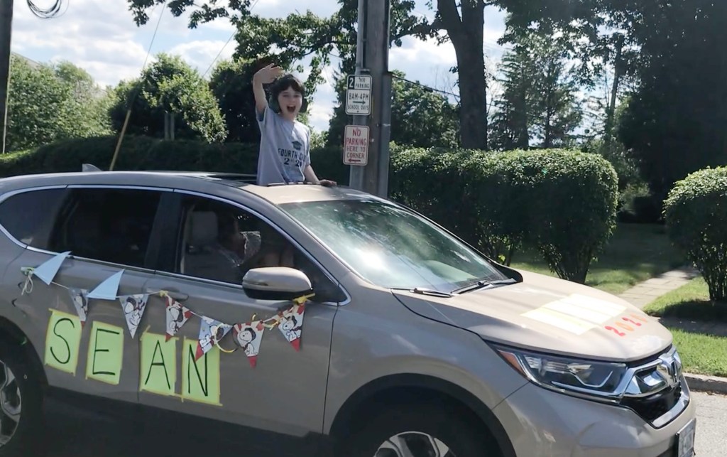 After that amazing experience I was looking forward to my little guy’s elementary school graduation parade…but he was not into it. Too much noise, too much waiting in line, not his thing, until it was! He decided to join in the car parade around the HS circle, it would be short, sweet, and age appropriate. Greg made a sign for him (Go Sean Go, referencing the classic, Go Dog Go) and we were ready to scream and wave our arms like crazy. First time around…he waved to us from the car window. Second and final time around he blew my mind. My little guy, who hates loud, who is not so into big events, my little guy was standing…half his body out the sun roof…smiling, waving, dancing, and feeling. Feeling. So. Much. More. Joy than he would have sitting in the hot sun waiting for his turn to take a piece of paper from his teacher. Swoon.