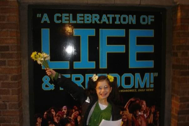 Because of my emotional investment in live theater…I cherish the ability to see favorite shows more than once. My friend took me to HAIR for my birthday, two shorties, last row of the orchestra, happily sitting on the back of our seats. Not missing a beat, on the train ride home, I scoured for the perfect tickets for my crew. First row aisle for two, and a bit further back for any who might be embarrassed by the nudity…divide and conquer. Our daughter, in her flower power shirt and ridiculously long pigtails, interacted with the cast throughout the show…doing what she does best, celebrating life.