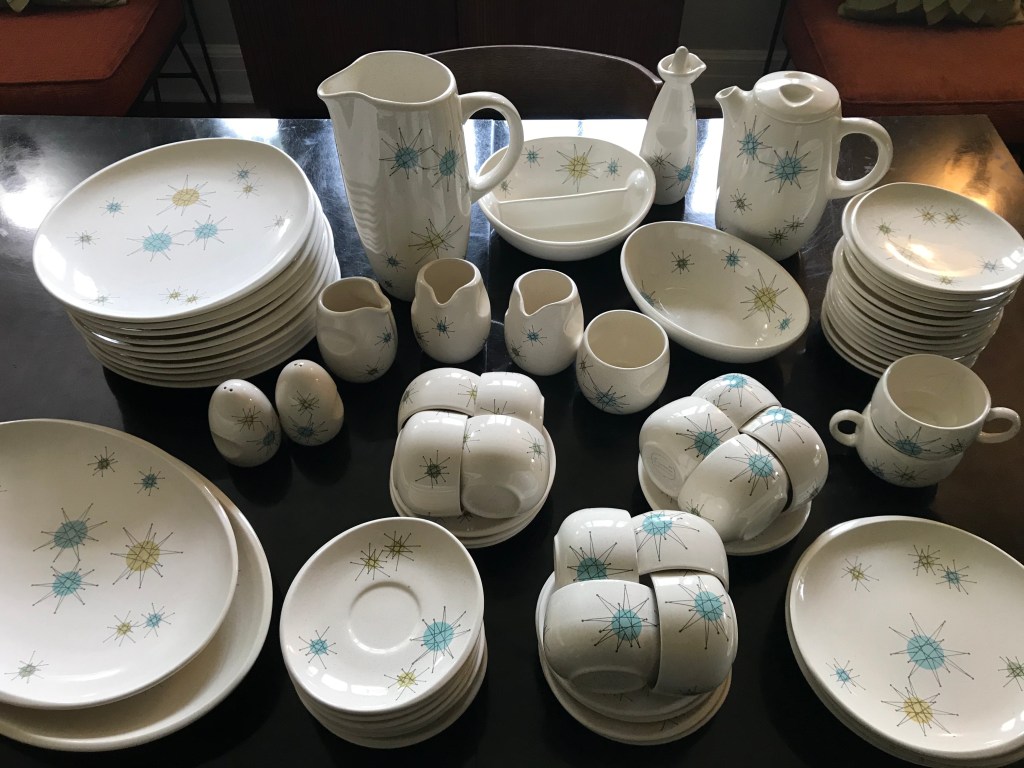 I woke up to a FB alert…60s Franciscan Earthenware in the Starburst pattern…was I dreaming? The bursts, the dots, the memories of these dishes in my Aunt Jean’s kitchen cabinets. Swoon.