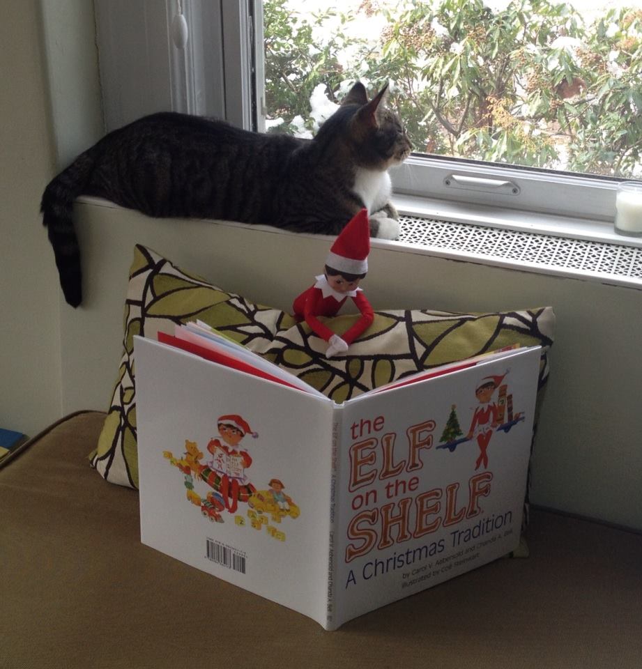 Hanging from the shades like a rock climber, stirring a pot of hot chocolate, sorting the laundry in the basement…not us…we were low key elf stylists, our elves did not drive the car or shave…no accoutrements, they were just hidden around the house.