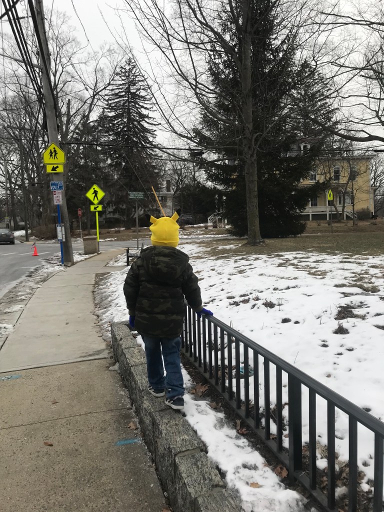 Being five in suburbia means public buses are mysterious, and the Metro Card on the bus sign is coveted. Being five means walking backwards is a blast and jumping off low walls is “so dangerous”…so dangerous that a hug is in order once you land safely. Being five means you give and get lots of hugs.